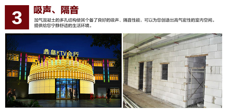 3、 吸聲、隔音:加氣混凝土的多孔結(jié)構(gòu)使其個備了良好的吸聲、隔音性能,可以為您創(chuàng)造出高氣密性的室內(nèi)空間。提供給您寧靜舒適的生活環(huán)境。