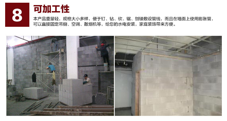 9、 可加工性:本產(chǎn)品重量輕,規(guī)格大小多樣,便于釘、鉆、砍、鋸、刨鏤敷設(shè)管線,而且在墻面上使用膨脹管,可以直接固定吊櫥、空調(diào)、汕煙機等,給您的水電安裝,家庭裝飾帶來方便。